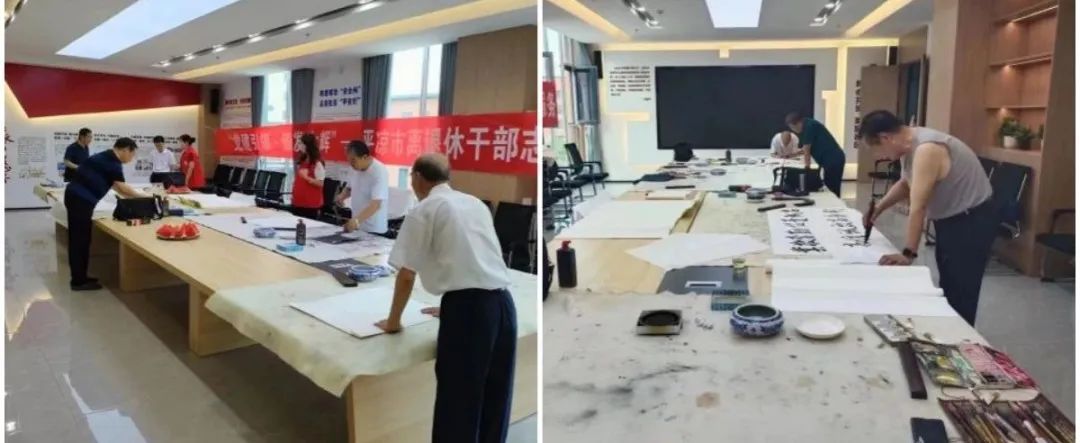 8月1日下午,平?jīng)龀峭都瘓F(tuán)公司聯(lián)合老干部活動中心在惠城物業(yè)紅色陣地崇文書苑物業(yè)服務(wù)中心開展“黨建引領(lǐng)·銀發(fā)生輝”——平?jīng)鍪须x退休干部“書畫進(jìn)企業(yè)”活動,5名擅長書畫創(chuàng)作的退休老干部受邀參加。