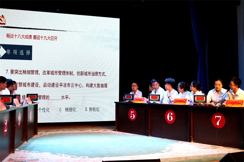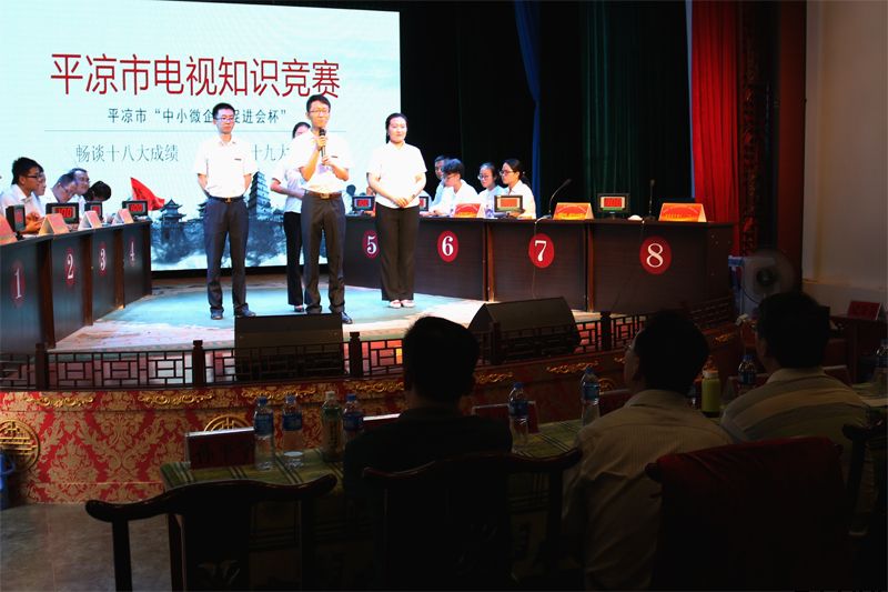 7月26日上午,參加全市“中小企業(yè)促進會杯”暢談十八大成績·喜迎十九大召開電視知識競賽復(fù)賽階段比賽的32支隊伍,為取得決賽的入場券在崆峒區(qū)“崆峒笑談”傳承演藝中心展開激烈角逐,我公司參賽隊代表中省駐平及市屬企業(yè)賽區(qū)參加競賽。