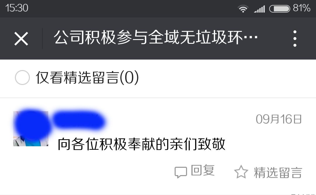 惠民公司全體員工無(wú)私貢獻(xiàn),為城市綠色整潔所付出的善行義舉也被社會(huì)各界群眾所稱贊,紛紛點(diǎn)贊支持。有網(wǎng)友在筆者朋友圈留言:“惠民公司處處體現(xiàn)惠民平?jīng)鋈嗣瘛?,還有網(wǎng)友在惠民公司微信公眾號(hào)留言:“向各位積極奉獻(xiàn)的親們致敬”。