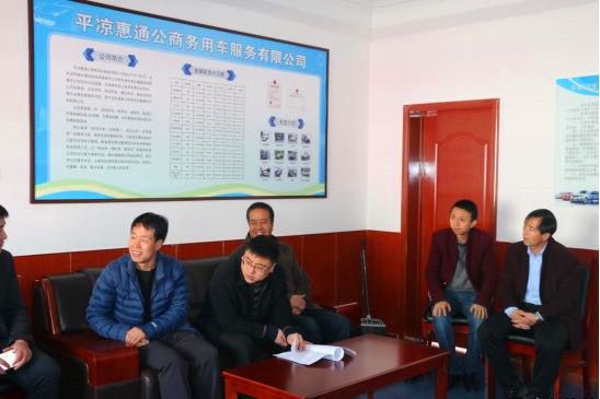 11月28日上午,靜寧縣機關(guān)事務(wù)管理局負(fù)責(zé)人帶領(lǐng)縣發(fā)改委、財政局、靜寧縣城投公司主要負(fù)責(zé)人一行8人來惠通公司考察學(xué)習(xí)。平?jīng)鍪屑壒珓?wù)用車服務(wù)中心主任牛彥平,惠通公司主要負(fù)責(zé)人陪同。