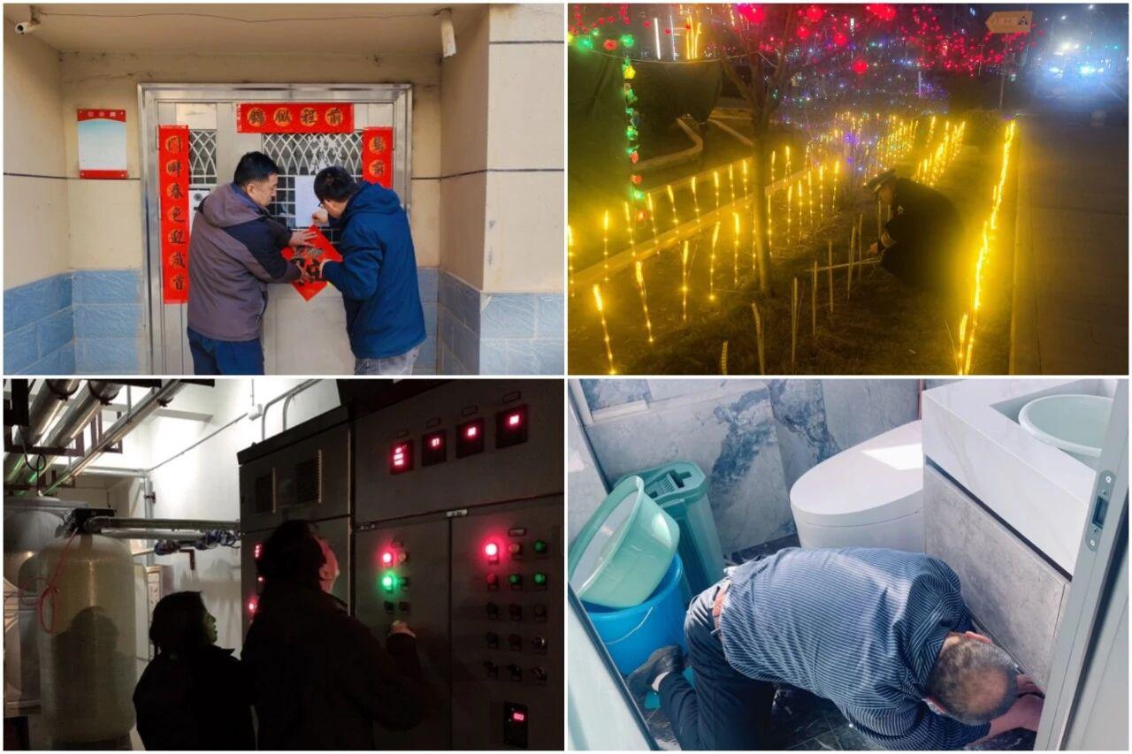 春節(jié)期間人員密集流動(dòng),各服務(wù)中心嚴(yán)格執(zhí)行24小時(shí)值班制度,保安人員加密巡邏頻次,重點(diǎn)排查關(guān)鍵區(qū)域、登記來訪人車;消防控制室全天候值守,物業(yè)管理人員全覆蓋巡查消防設(shè)施、電氣線路等重點(diǎn)部位,及時(shí)消除安全隱患。針對(duì)節(jié)日期間水電氣用量驟增的情況,公司提前制定應(yīng)急預(yù)案、備足搶修物資,維修中心24小時(shí)在崗化身"維修衛(wèi)士",做到"報(bào)修即響應(yīng)、到場(chǎng)即處理",全力保障業(yè)主生活順暢。保潔人員主動(dòng)加碼工作量,天未亮便開始清掃小區(qū)主次干道、樓道走廊等區(qū)域,定時(shí)消殺電梯轎廂與垃圾分類點(diǎn),確保垃圾清運(yùn)日產(chǎn)日清,以干凈整潔的環(huán)境為業(yè)主增添濃濃"年味"。