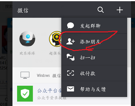 2.找到并點擊右上角加號,在彈出的對話框里選擇“添加朋友”