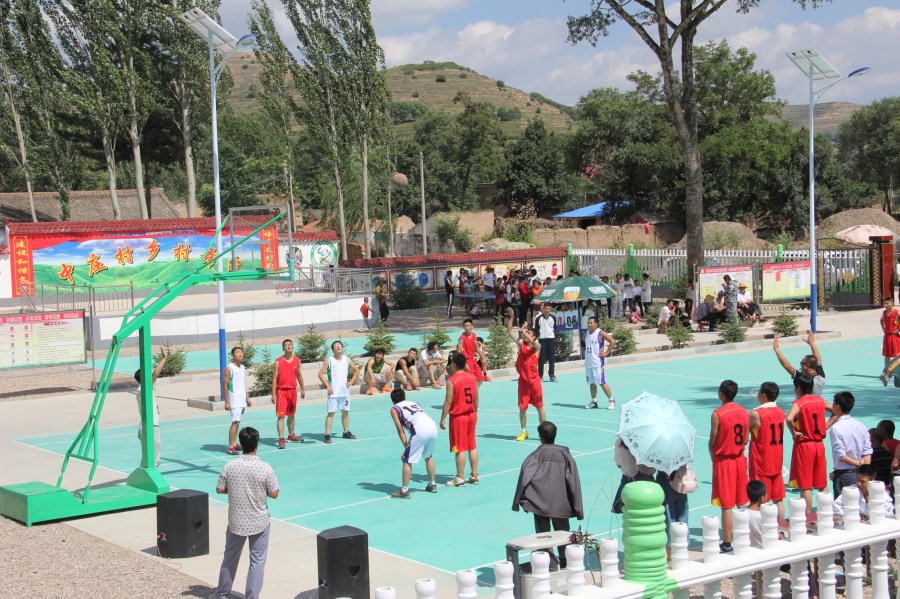 ?圖為公司職工與曹務(wù)鄉(xiāng)、中莊村籃球隊(duì)在新建成的中莊村文化活動(dòng)中心舉行了籃球友誼賽